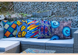 Afrikanischer Kissenbezug (Hülle) aus Kenia, hergestellt in der Schneiderei vom Nice View Kinderdorf.